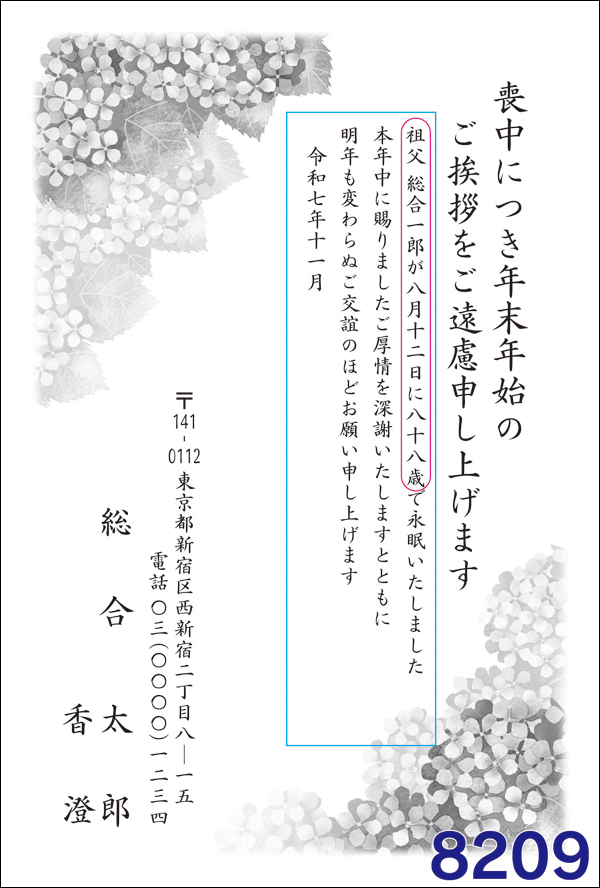 喪中はがき(モノクロ)